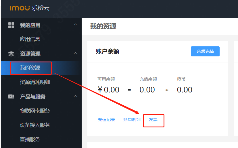 Step1:点击“控制台--我的资源--发票 (opens new window)”